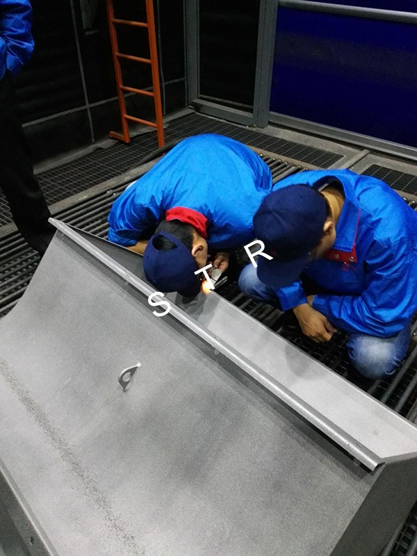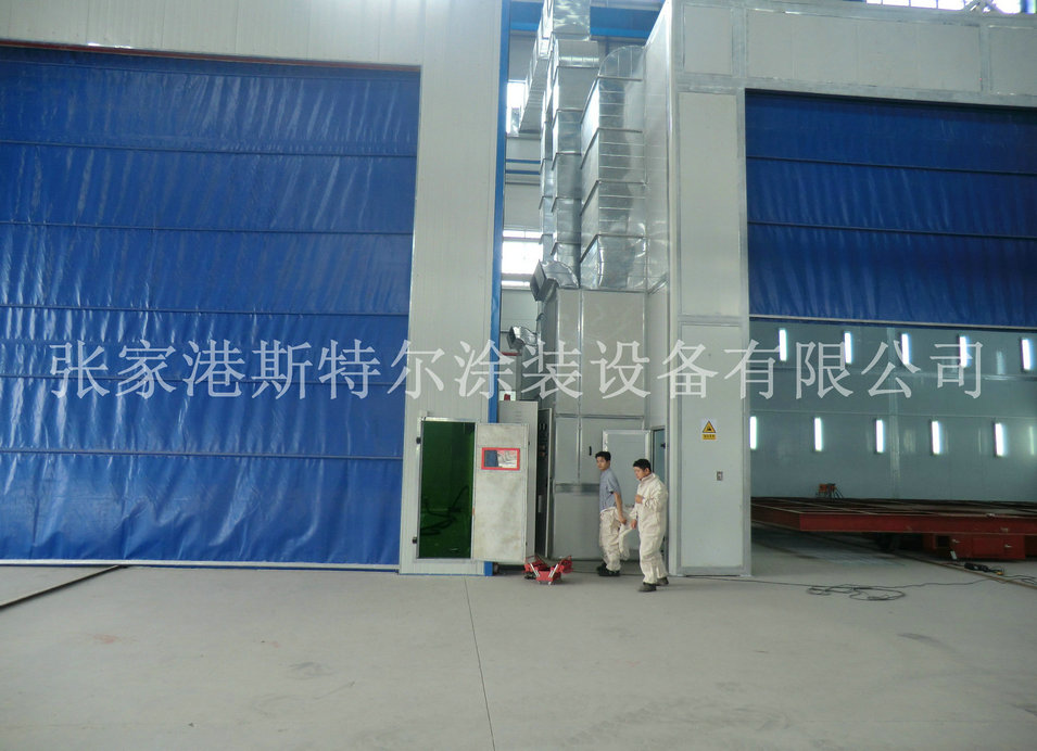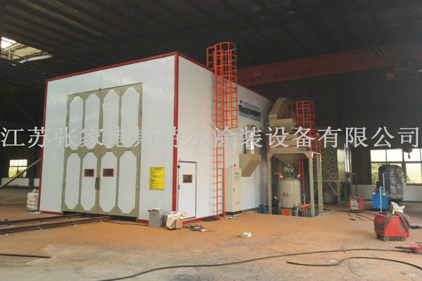2.3 臺車進入噴砂房內,關閉大門;