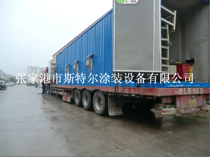 根據客戶要求及工件尺寸,房體工作尺寸設計為18x6x6.5m。本噴砂房體采用100mm方管做基本框架,內部采用50方管做內部支撐,內部鋪2mm鋼板及3mm橡膠板,外面壁墻采用50mm厚彩鋼夾心板制造,外形美觀、安裝便捷、防腐耐用。彩鋼板夾心層為聚苯乙烯發泡塑料,與常規用純鋼板制作的噴砂房體相比,具有以下特點: