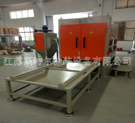 多工位手動噴砂機是我公司為上海麥鑫船舶科技四虎影视免费永久大全-四虎8848精品成人免费网站-四虎视频国产精品免费入口-四虎4hu永久免费网站影院量身定制的一款噴砂機,用于船舶渦輪增壓器、調速器的維修保養等,以提高產品表面處理的效率及質量而定制的噴砂機。該設備設計有3個操作工位,承重1噸的工作臺車架,方便對工件360度進行噴砂,該噴砂機可以實現多方位噴砂處理有效解決在噴砂加工期間的大工件無法翻面等問題,噴砂機工作室采用噴砂耐磨橡膠板雙層防護等特點提高工作倉的使用年限,照明裝置采用LED噴砂機專用照明燈,亮度及使用壽命都非常好。 除塵系統是由2濾筒和一臺2.2KW的風機組成,濾筒清洗由脈沖巡回系統反吹進行清洗。可一次性吹掃殘留在濾筒表面的微小顆粒。此脈沖控制儀采用微電腦自動化控制,只需簡單調試便可使用。噴砂室空間為4400mm*2000mm,配有4盞防爆節能燈,簡單方便的設計非常符合客戶的要求。