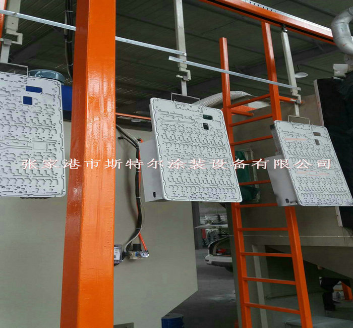 江蘇某企業在我司定制的懸掛鏈自動噴砂機具有以下幾個特點服務:首要是華為公司(si)5G 移動基(ji)站鋁殼(ke)板(ban)。